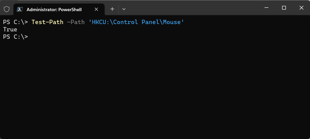 Test-Path -Path 'HKCU:Control PanelMouse'