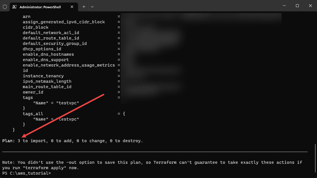 As you can see, we have imported 3 resources as expected, our VPC, subnet, and EC2 instance.