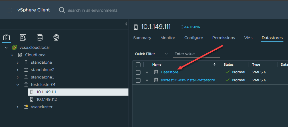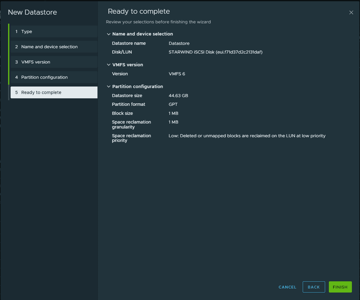 The StarWind datastore is now added to both the ESXi hosts in the cluster.