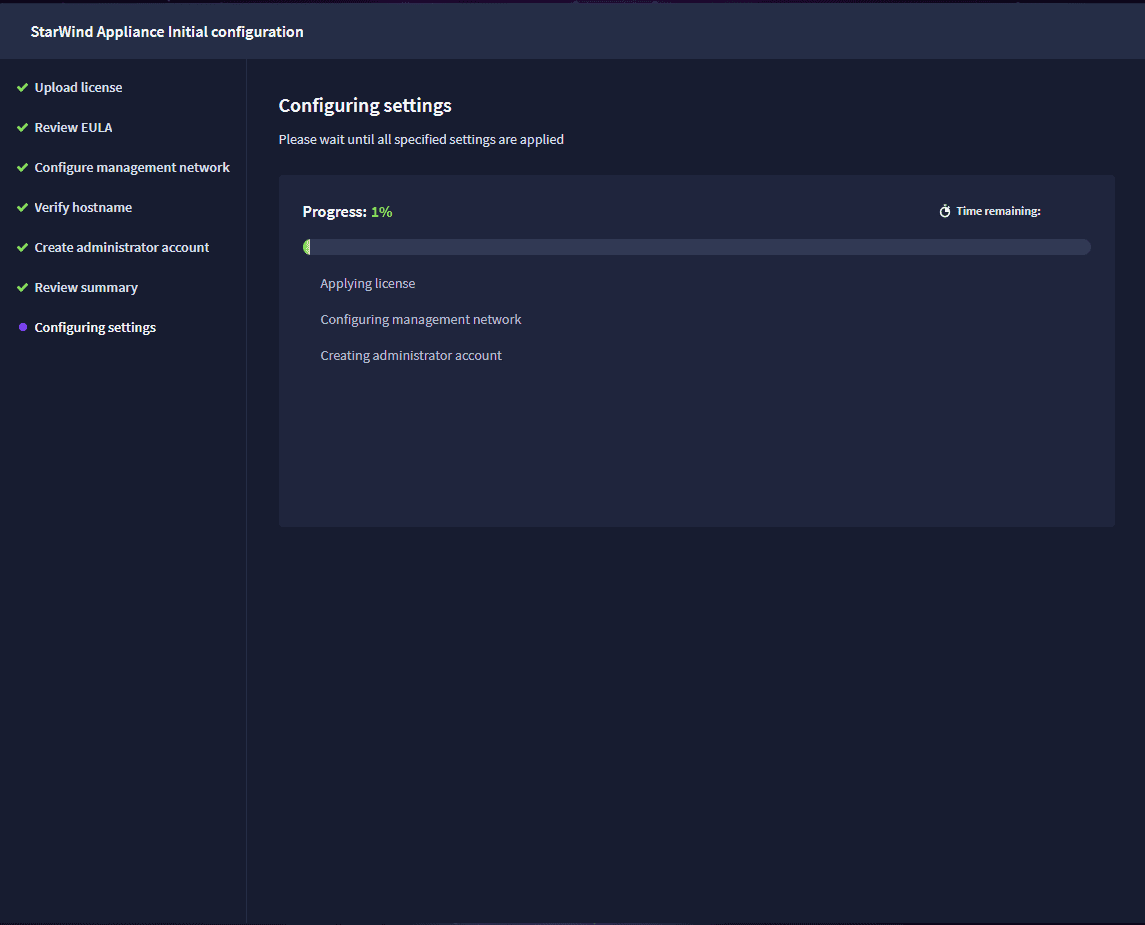 After you deploy the appliance, you will need to run through the initial setup wizard once you browse out to the web address configured on your StarWind appliance.