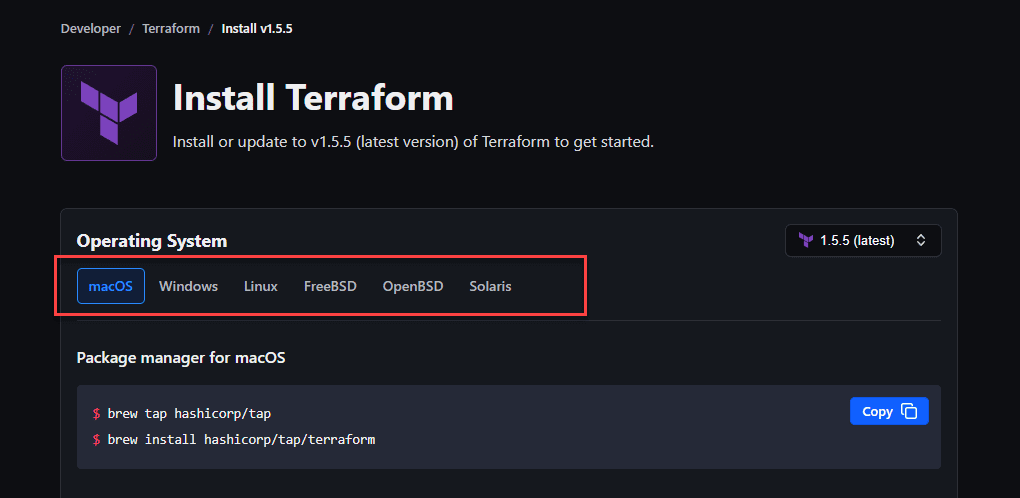 Terraform is just a single binary file download from here: Install | Terraform | HashiCorp Developer. After downloading, you add a PATH variable to point to your Terraform binary.