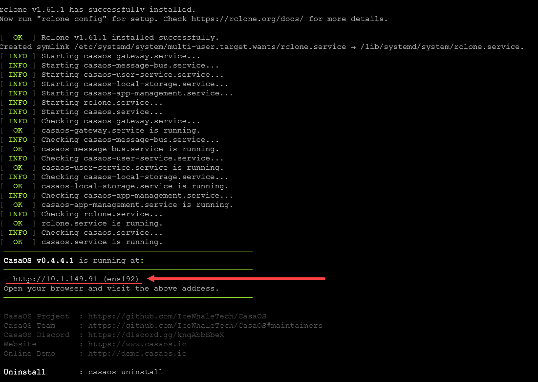 As the installer shows, you can access CasaOS using a URL pointed to the IP of your CasaOS host.