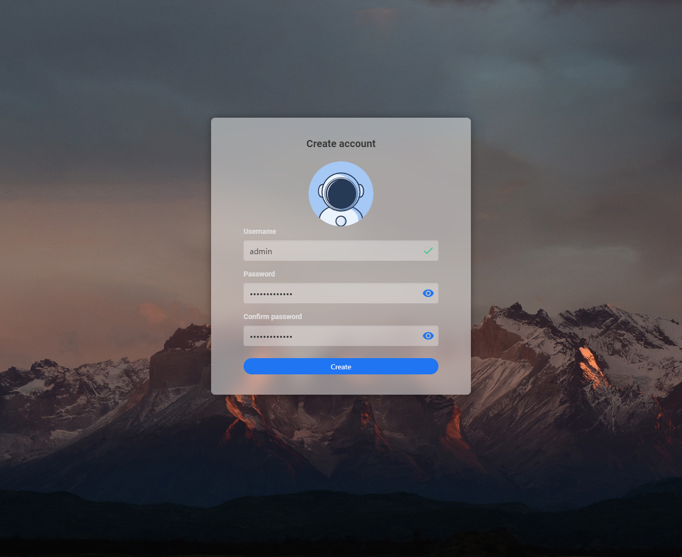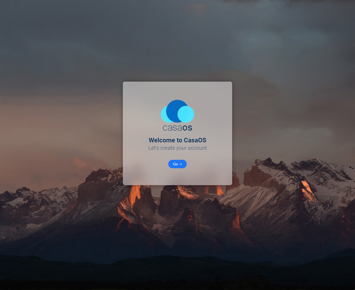 Below, navigating to the URL of project CasaOS, we get the splash screen prompting us to create an account.