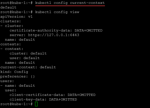 The kubectl config command opens up a range of possibilities. You can use the kubectl config view command to see all the details of your kubeconfig file,
