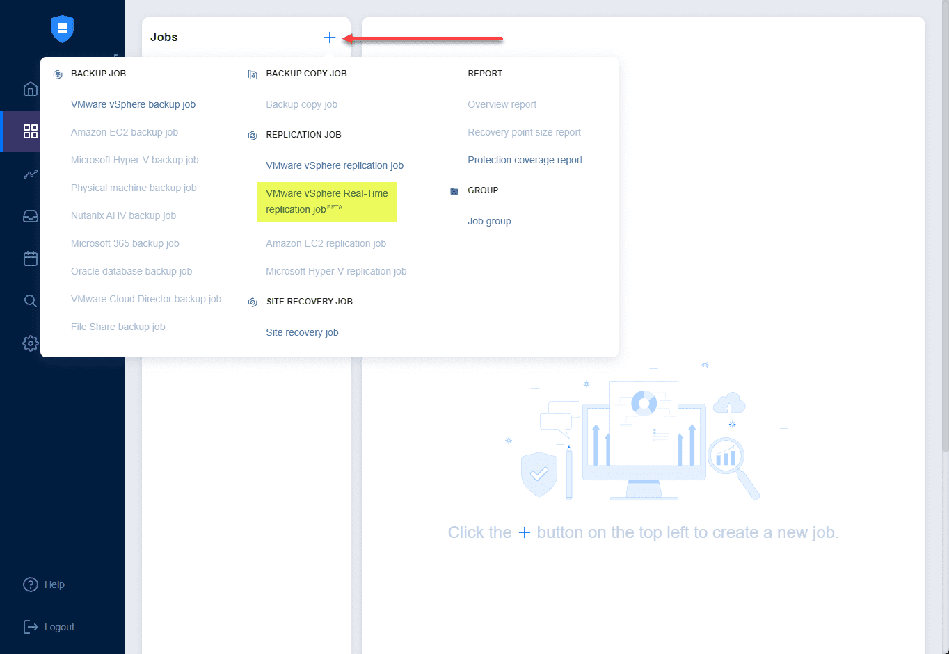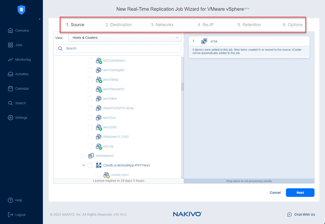 Creating the real-time replication job using NAKIVO backup replication v10.10 is intuitive: