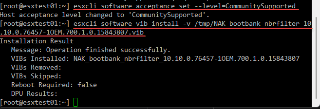 esxcli software vib install -v /tmp/NAK_bootbank_nbrfilter_10