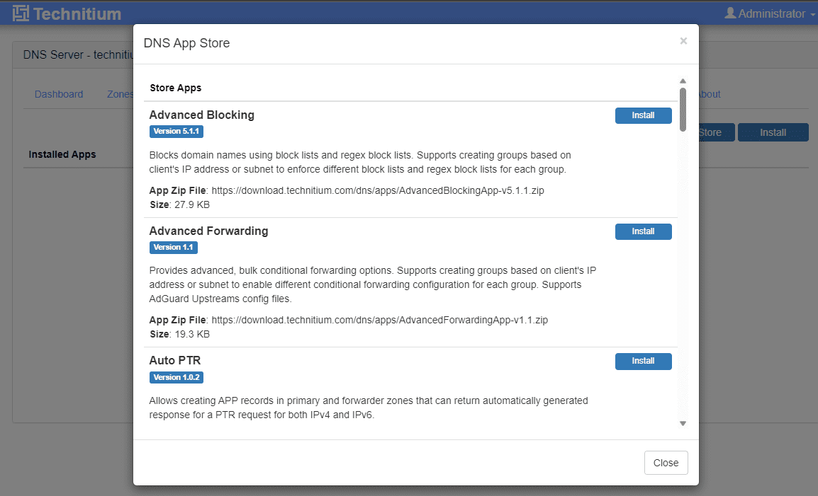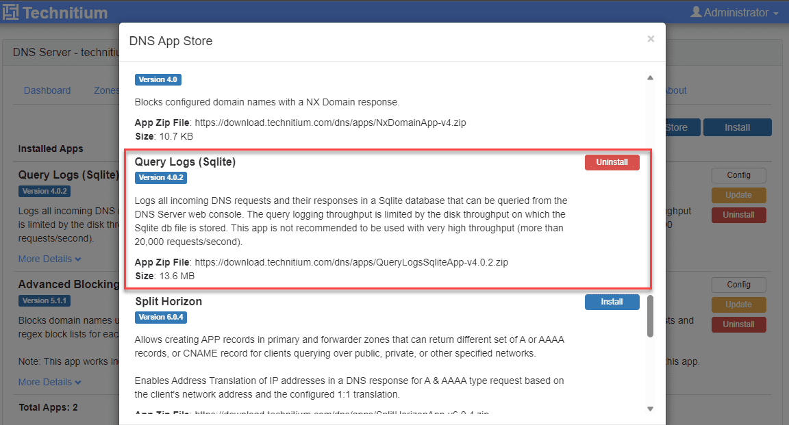 As we will see below, DNS Apps in Technititum allow extending the capabilities of Technititum and allow it to do even more. It makes it a highly modular solution that sets it apart from other self-hosted DNS solutions.