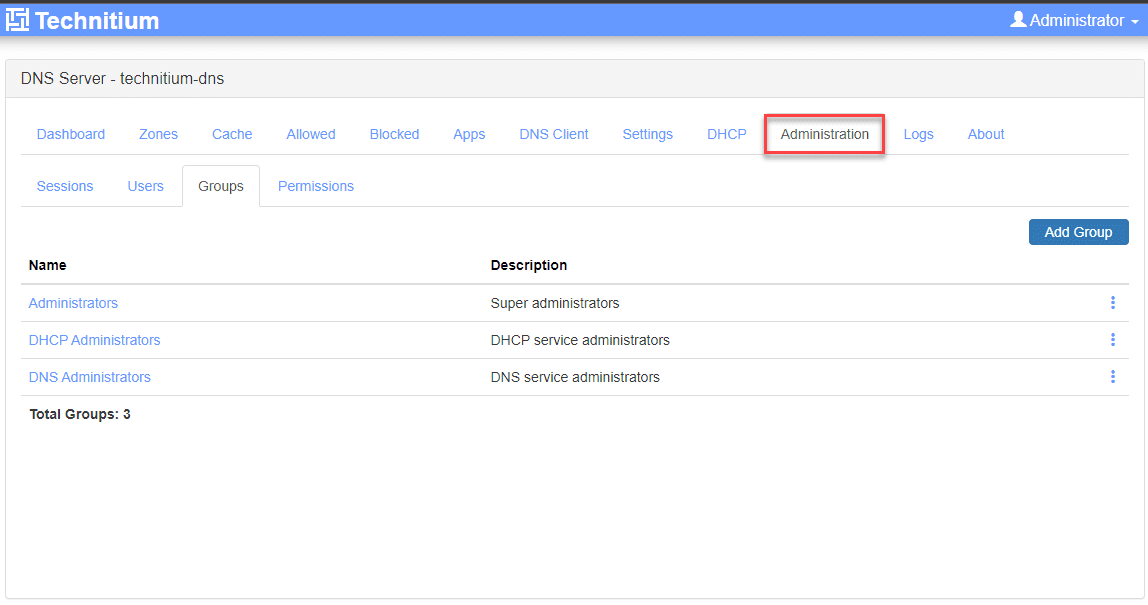 Technitium comes out of the box with great support for role-based access controls. It has the concept of users and groups and built in permissions that define access to the core features of the solution. It was designed to allow administration for multiple users, using least privilege access settings.