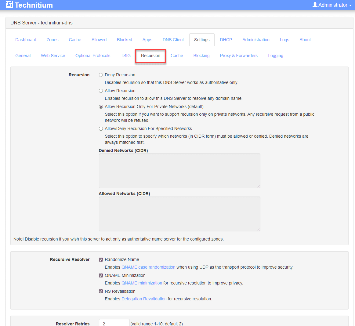 # - DNS_SERVER_RECURSION=AllowOnlyForPrivateNetworks #Recursion options: Allow, Deny, AllowOnlyForPrivateNetworks, UseSpecifiedNetworks.
