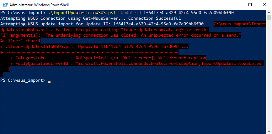 Microsoft recently announced that the WSUS import updates feature in the WSUS console would no longer be used. Instead, admins need to use a PowerShell script provided by Microsoft to import updates into WSUS. However, in my recent testing of the script on a Windows Server 2022 server with WSUS installed, after following the steps exactly from the Microsoft KB, I received the error, “The underlying connection was closed: An unexpected error occurred on a send.” Let’s look at the error and the fix for this issue.