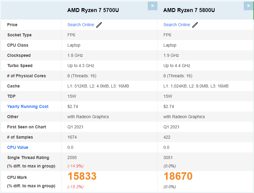 The 5800U surpasses what the 5700U can do. Note the following PC Mark score comparison: