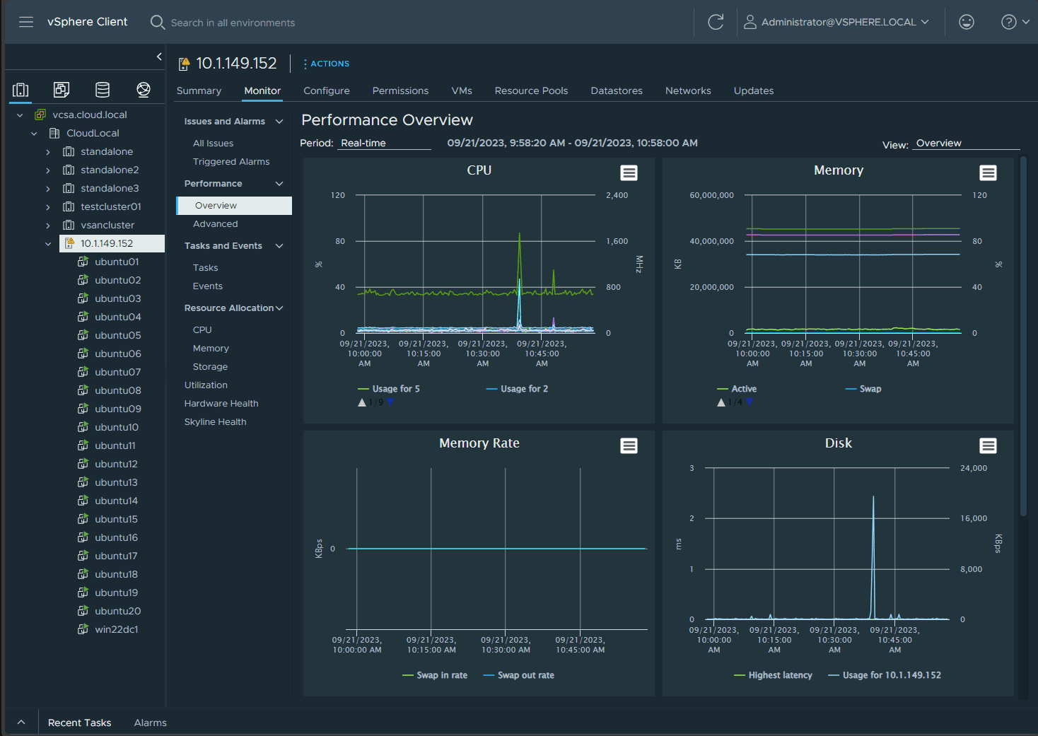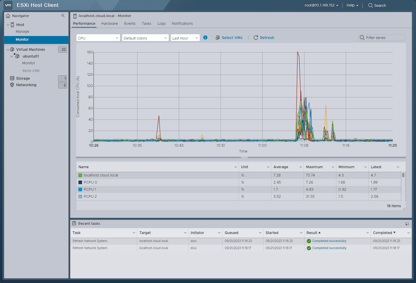 As you can see below, the little server is barely breaking a sweat with 21 virtual machines.