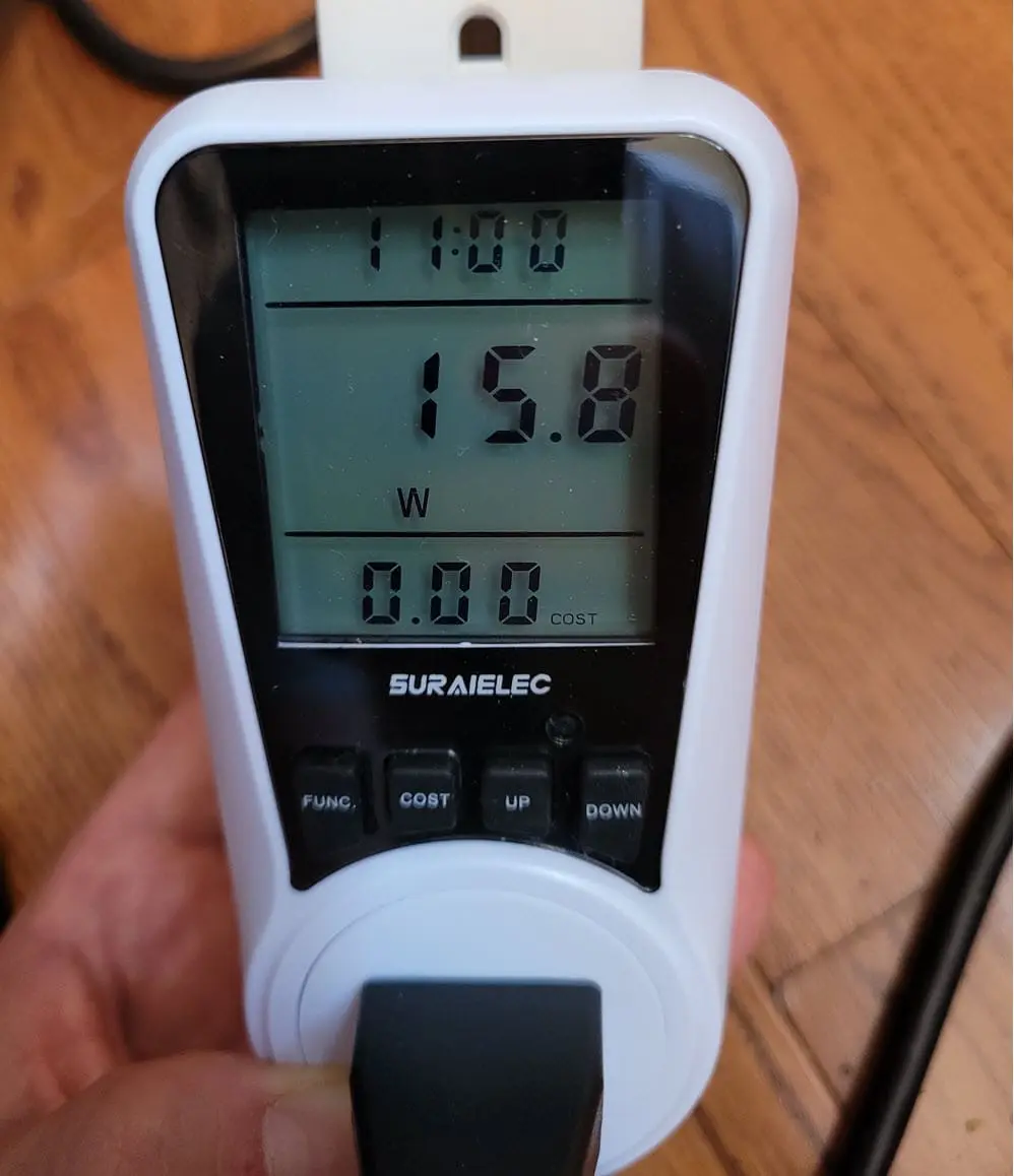 Below, the power consumption was roughly around 16 watts when the VMs were idling and with minimal activity across the board. Not bad!