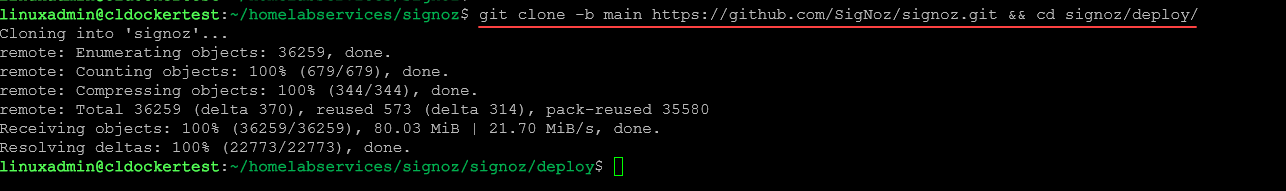 git clone -b main https://github.com/SigNoz/signoz.git && cd signoz/deploy/