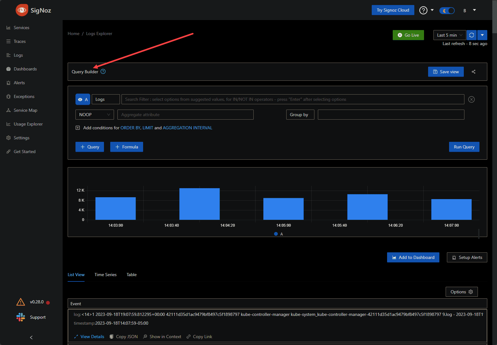 Utilize tailing, search mechanisms, and a log query builder, providing control over your logs