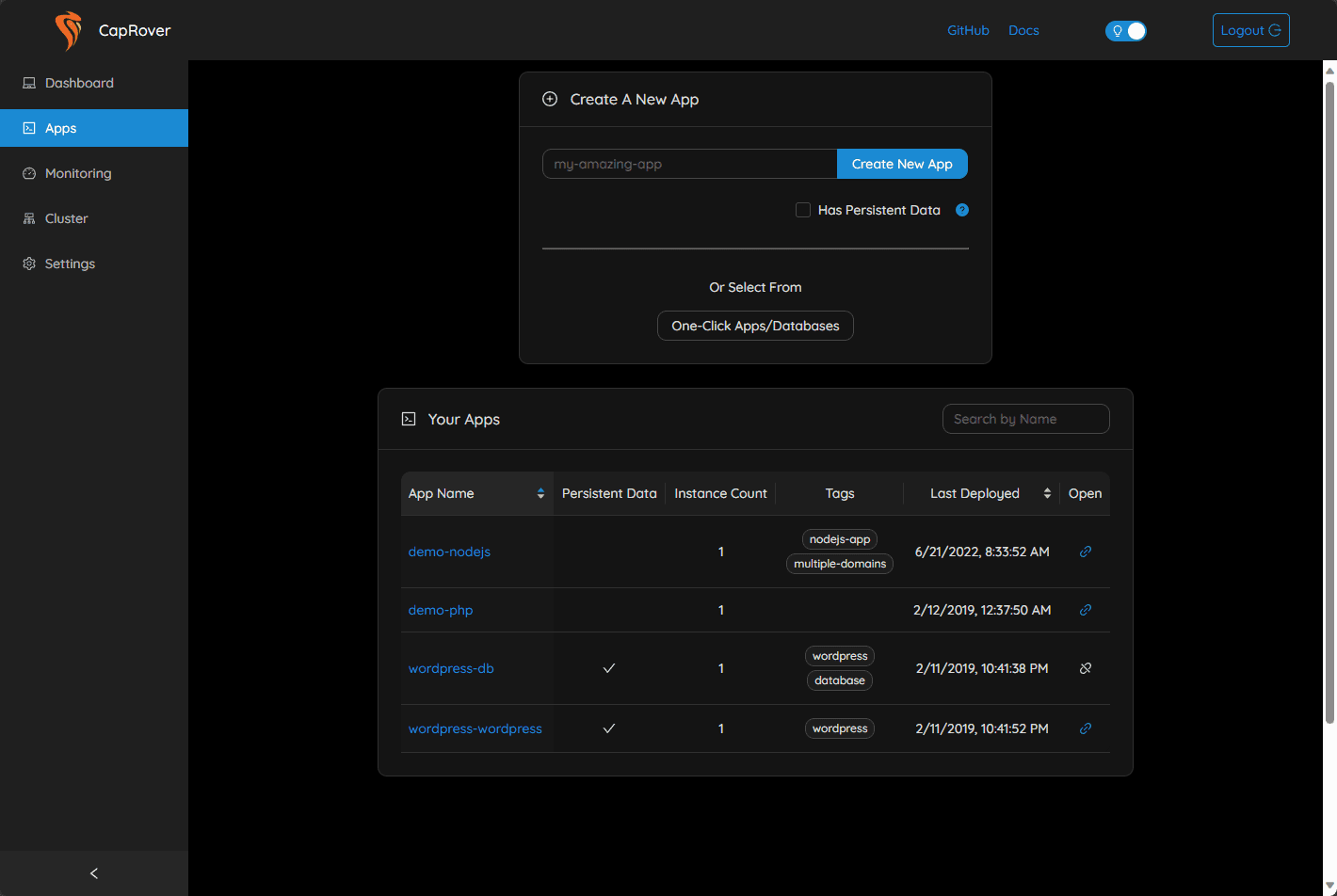 Tailored primarily for developers and small businesses, Caprover simplifies app deployment and introduces a minimal web-based interface.