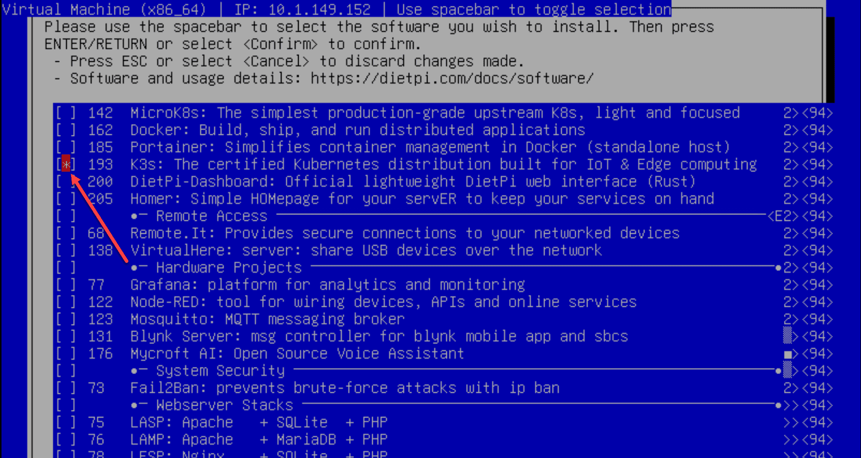 In the very console-driven interface, there are tons of solutions you can simply place a check by and watch them install, including Kubernetes. How cool is that?