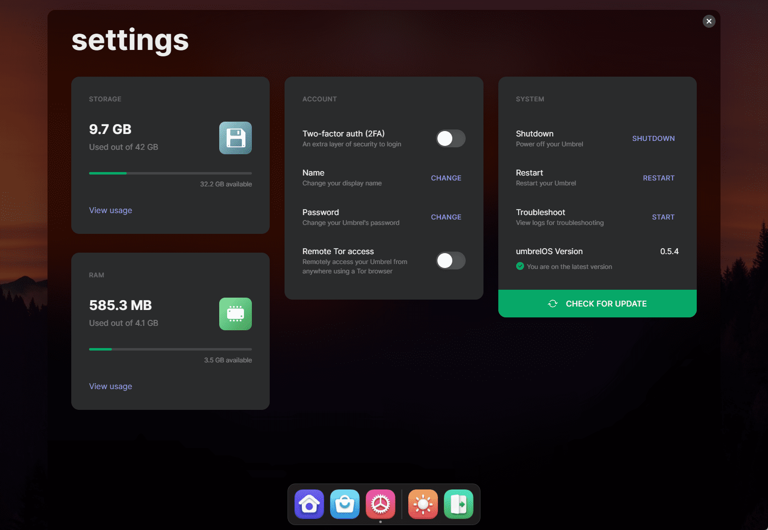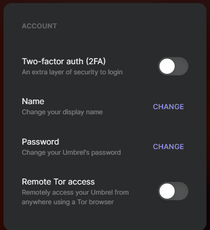 One thing that is great to see as well is Umbrel offers 2FA in the settings by default that can be easily flagged on.
