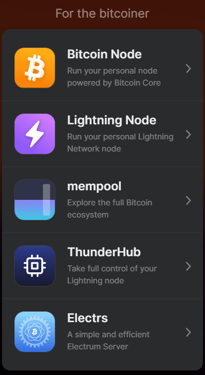 For the Self-Hoster: Recognizing the growing demand for data privacy and autonomy, Umbrel features an App Store. This store is a treasure trove of applications and services that users can host on their own servers. From file storage solutions to communication tools, the self-hoster has many options, putting them in complete control of their data and online services.