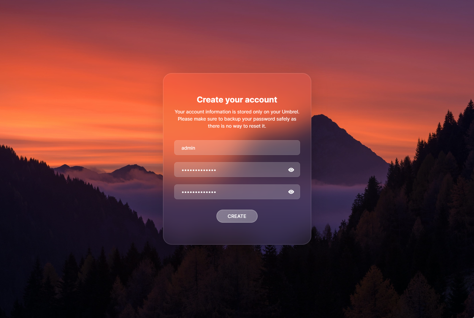 First, you will be prompted to configure your username and setting up an Umbrel password.