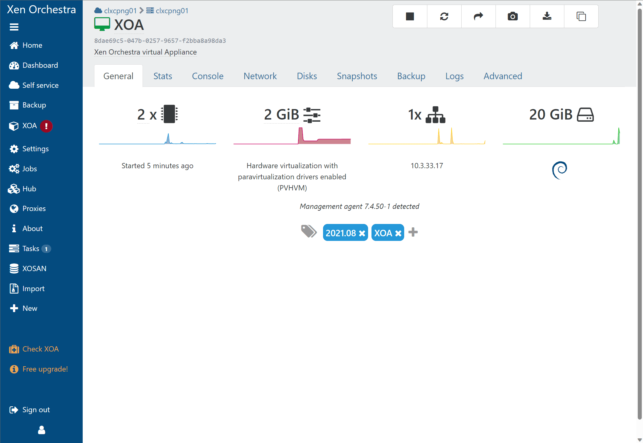 Logged into Xen Orchestra.