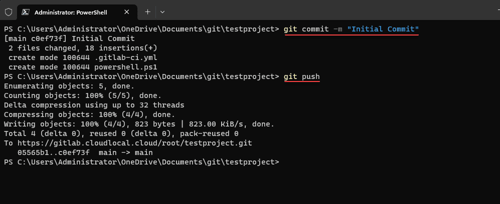 Now, from the command line we will commit and push changes to our GitLab repository.