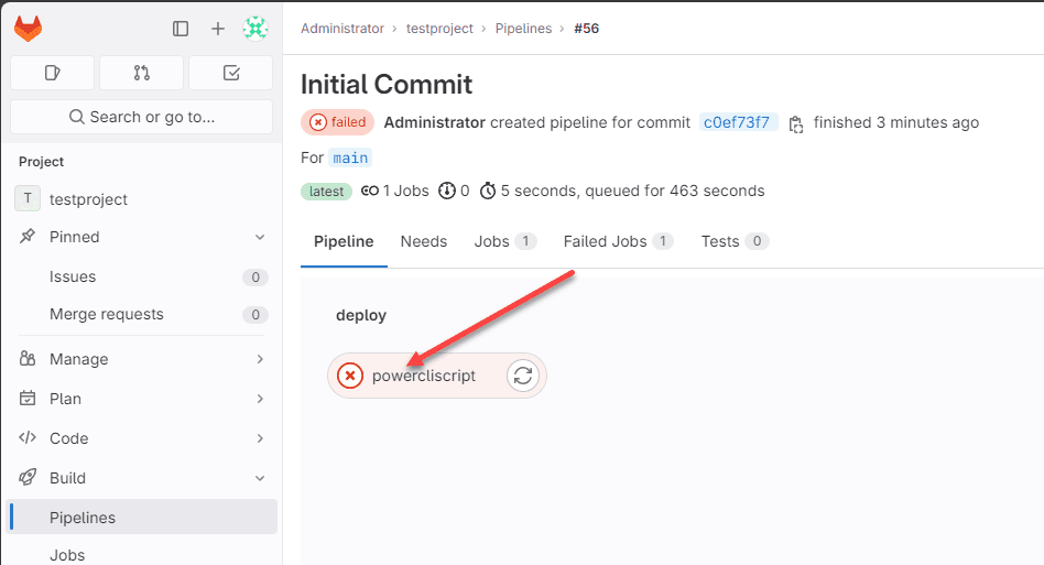 As soon as you push your commit to your GitLab repo, your CI CD pipeline will attempt to run. If you see a failed pipeline run, you can look at the details of the failure and see what is failing.