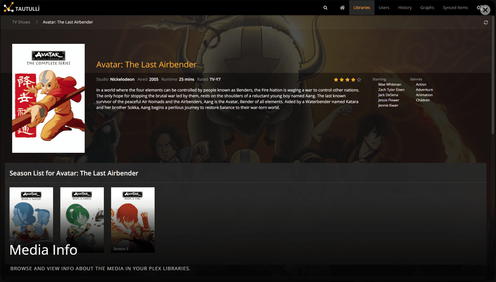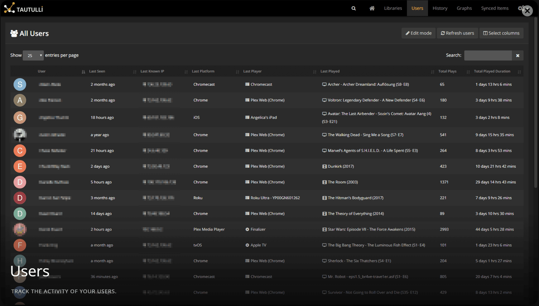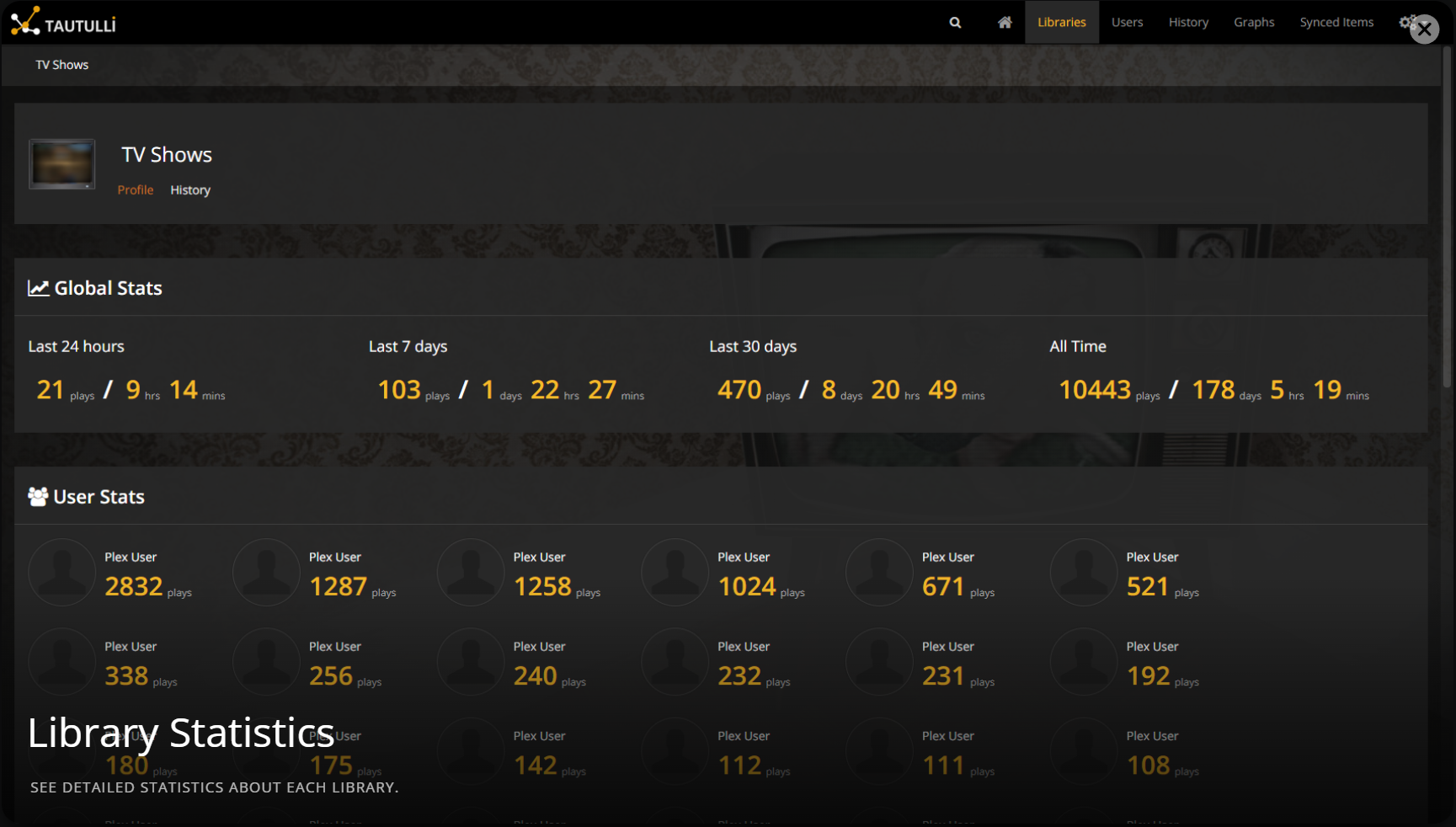 Tautulli provides complete library statistics to a full sync list data and global watching history. It also presents rich analytics in a clean interface for efficient server management.