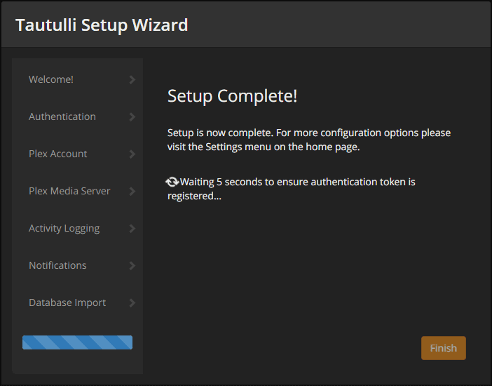 Finally, you will reach the end of the setup, finishing the initial Tautulli setup wizard.