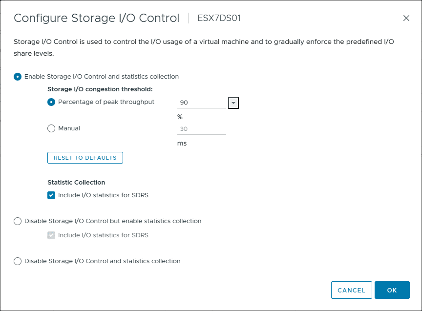 Check the “Enable Storage I/O Control and Statistics Collection” option.