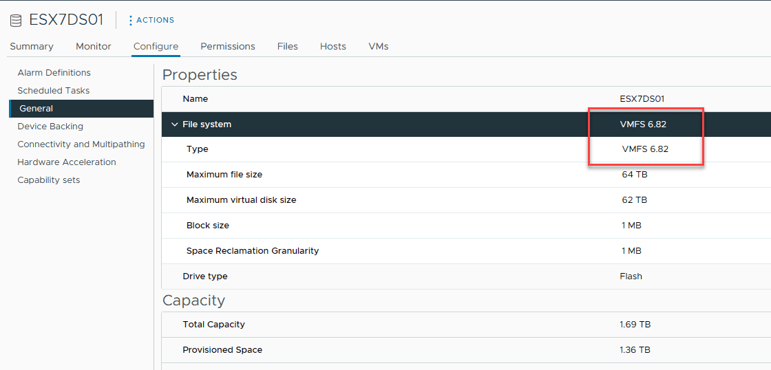 Alongside this, using VMFS 6 for your VMFS datastore ensures enhanced performance and an automatic UNMAP feature, catering to a file system that meets modern demands.