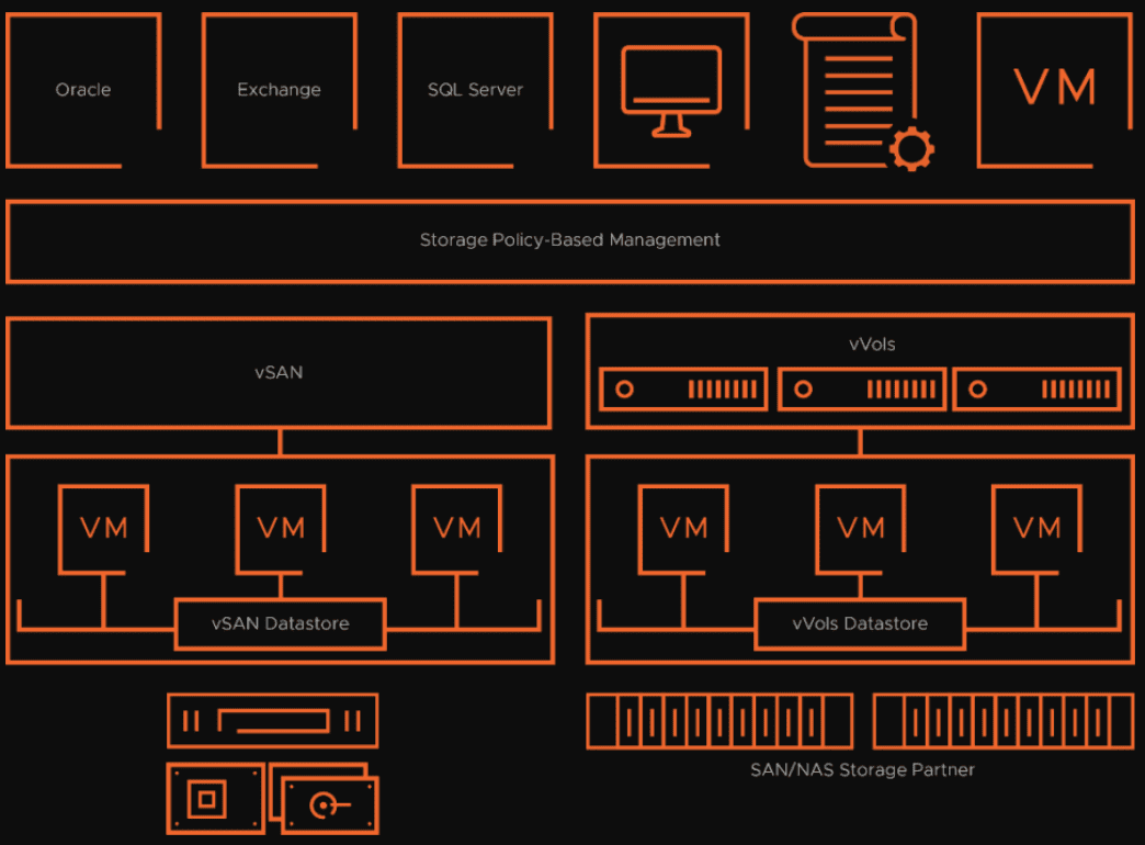 Both use storage policy-based management (SPBM) to streamline storage provisioning and apply policies at the VM or VMDK level. Through SPBM, storage processes are configured in a way that aligns with business objectives, reducing the demand for specialized storage infrastructure expertise