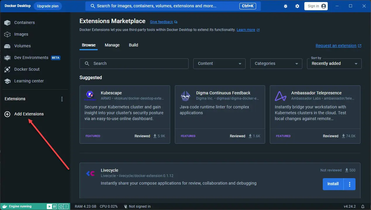 You can also use Docker Desktop Extensions. These extend what you can achieve with your setup. Extensions enable integrating tools with your docker development environment.