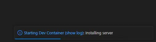When you choose to open in Visual Studio Code, you will see it starting the Dev container in the VS Code interface: