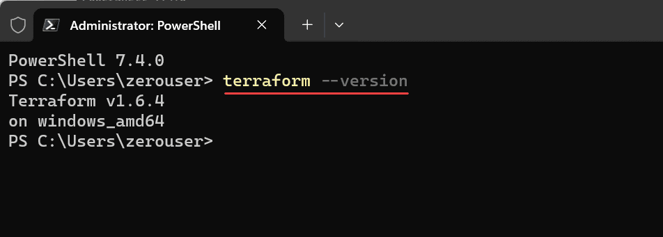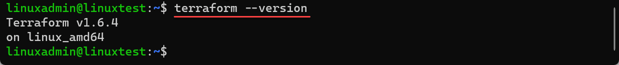 After installation, you can check the version of Terraform and that it has been installed correctly, using the command: