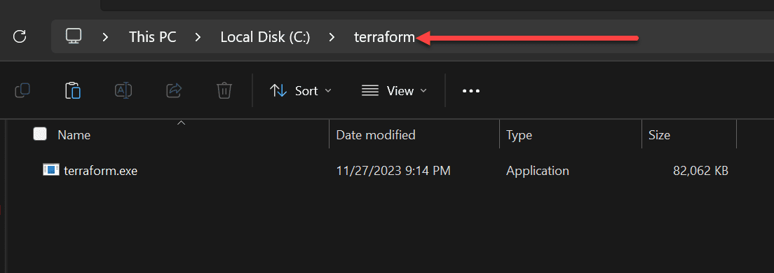 - Place the extracted file in a suitable directory, like C:\Terraform.
