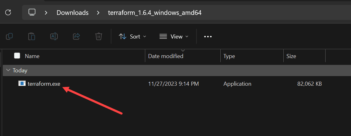 - Extract the Terraform executable file from the downloaded zip file.