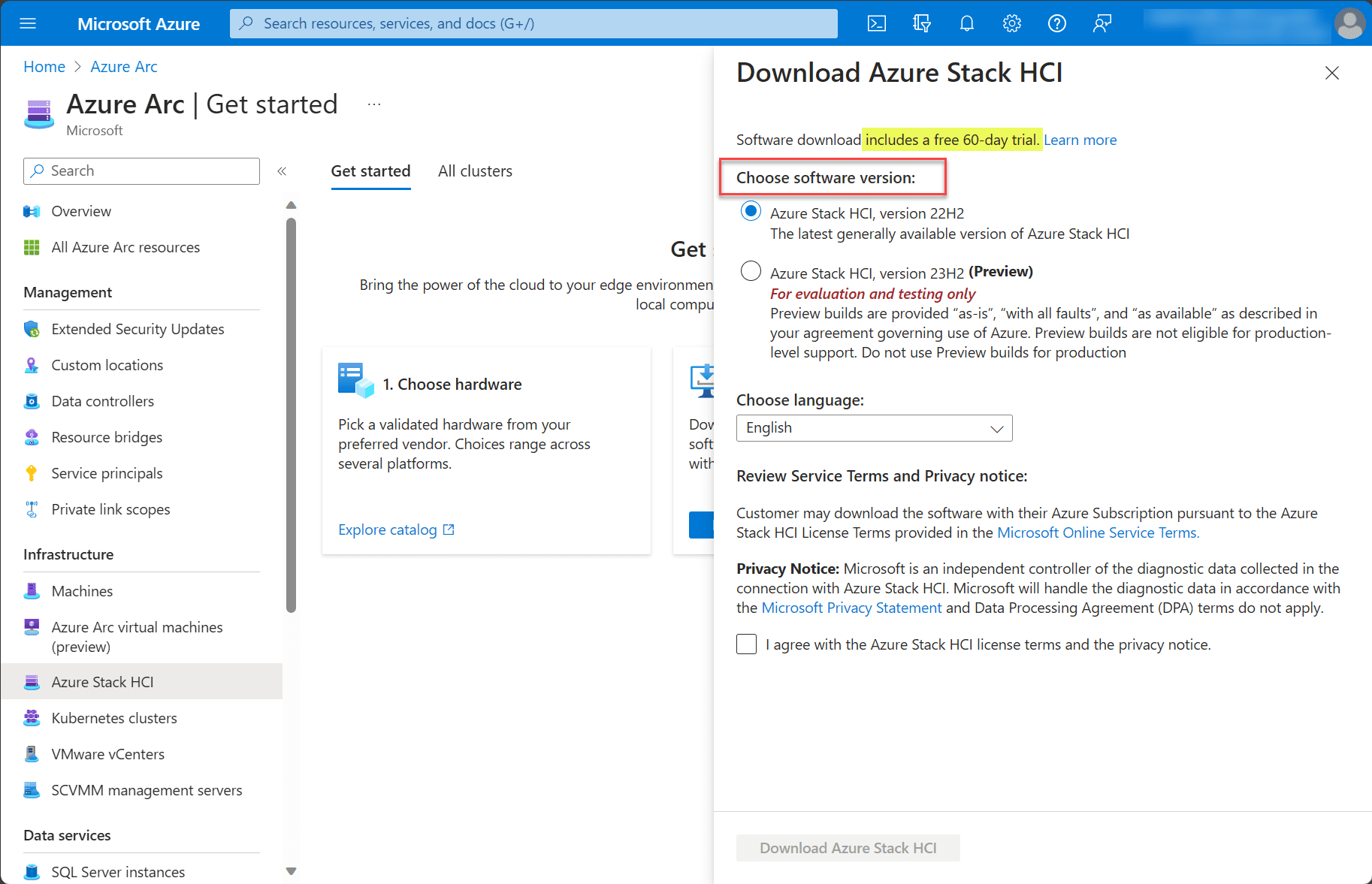 Downloading Azure Stack HCI installation.