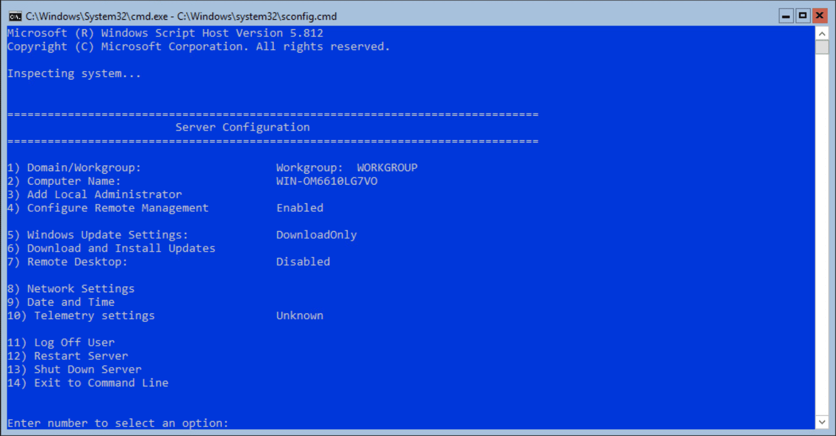 Below is a look at Hyper-V 2019 Server hypervisor platform with the sconfig menu.