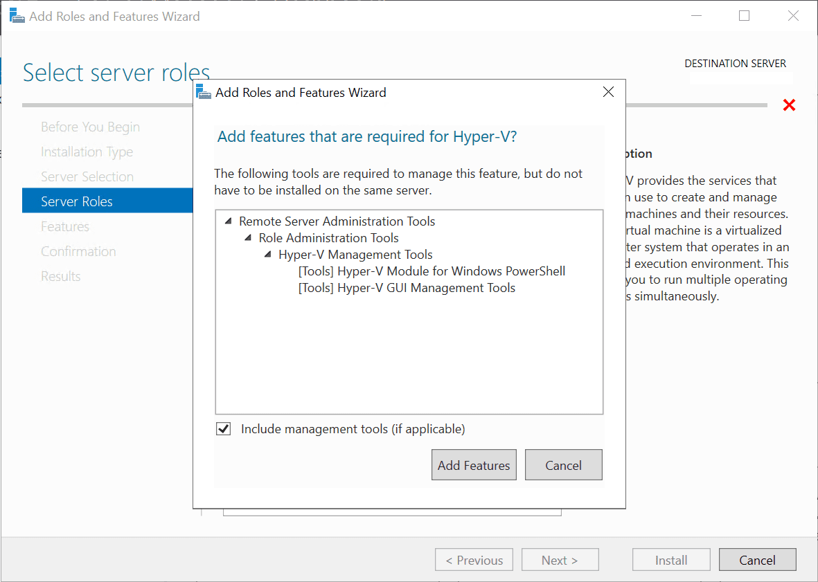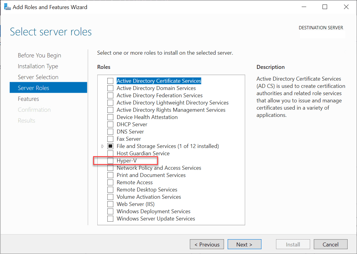 In the below example, we are installing the Hyper-V role in Windows