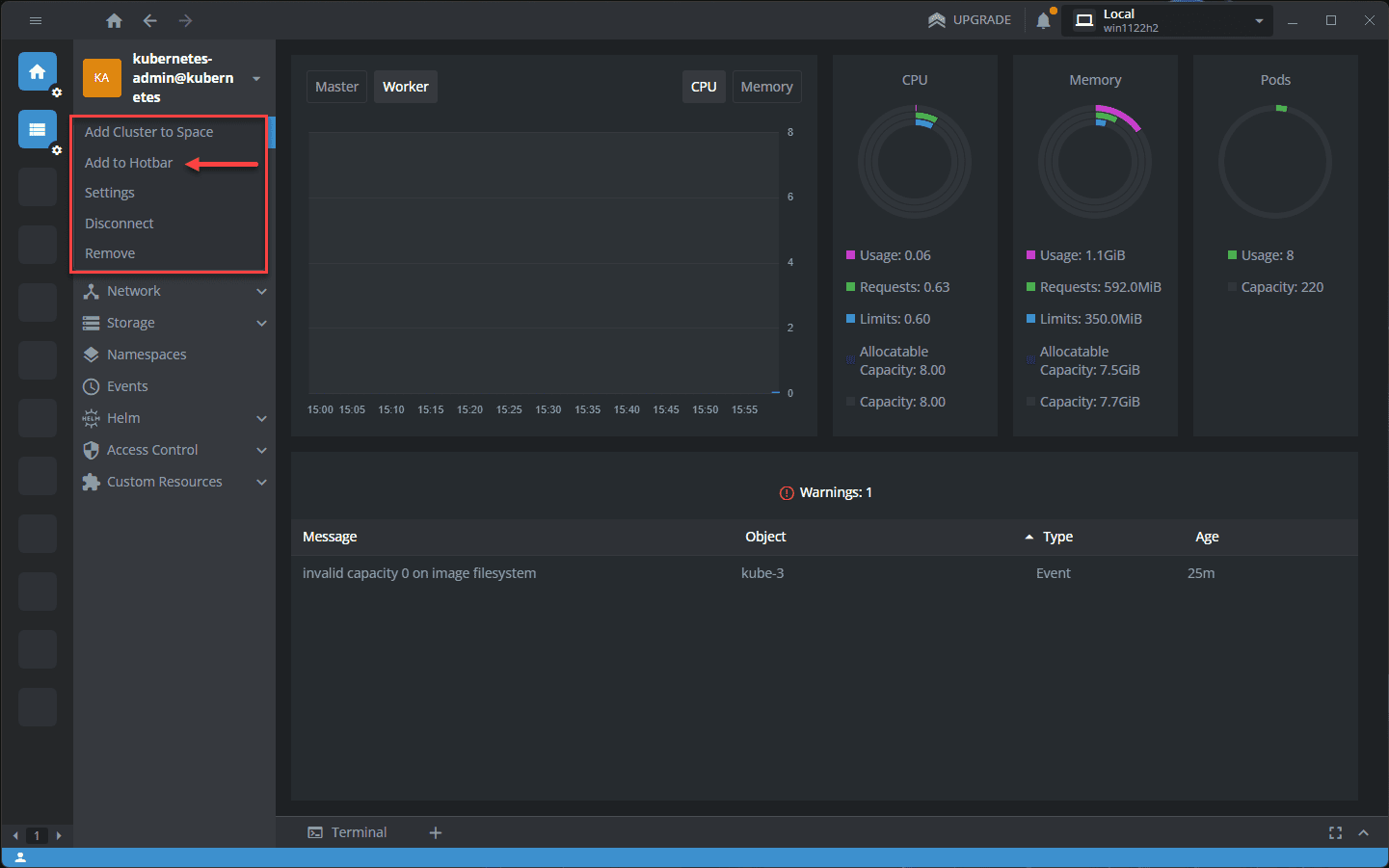 One thing I like about Lens is it lets you add your favorite or most used clusters to what it calls the “Hot bar.”