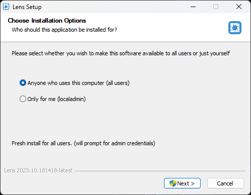 You can download Lens here: Lens | The Kubernetes IDE (k8slens.dev). Below is a quick look at the screenshots from installation.