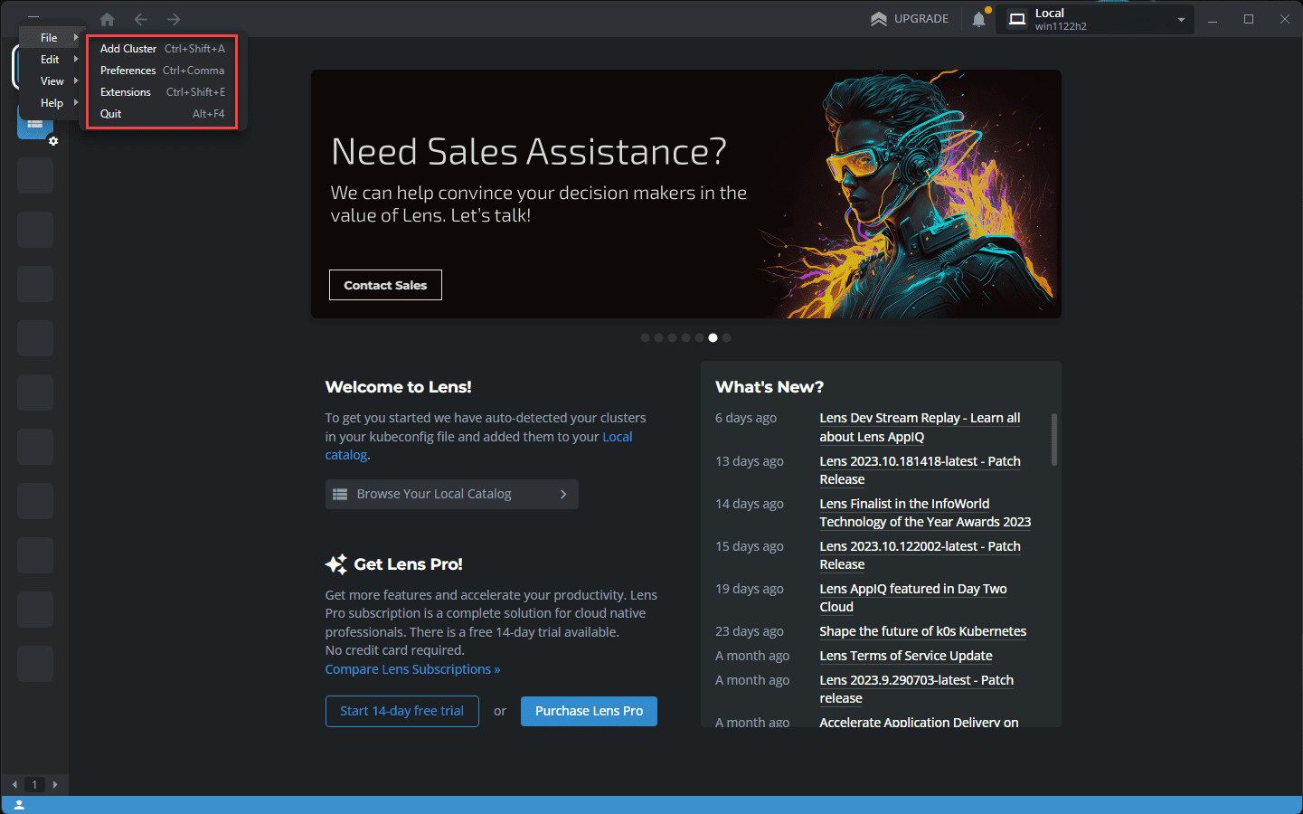 Lens Pro offers extended functionalities of Lens Desktop. The pro features include enhanced security, commercial support, and provides increased productivity and time to value for teams.