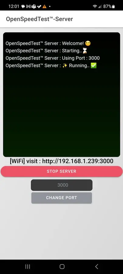 After installing the app, you launch the application and you can click the Start Server button to begin testing.