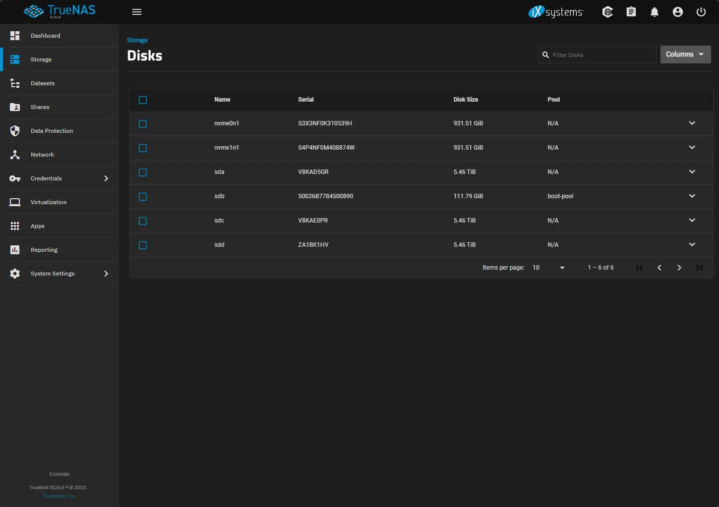 Below is a shot of the Disks screen where you can see the NVMe drives and 6 TB SATA disks I have installed in the system.
