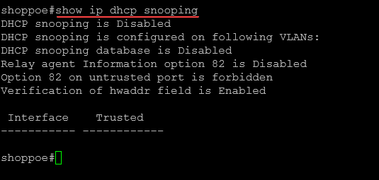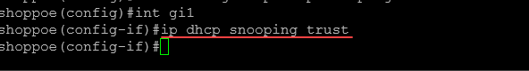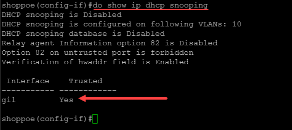 After we add the ip dhcp snooping trust for the interface, we can check the interface with the command: