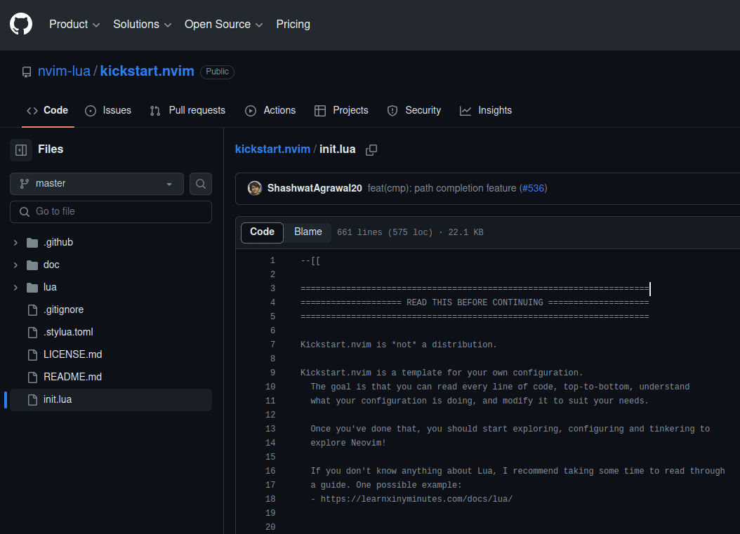 Neovim using init.vim to configure the solution. There is a great project called the kickstart. With the kickstart.nvim script file placed in your init.vim, you can take your Nvim installation from the default settings to modded-out settings with lots of goodies preinstalled.