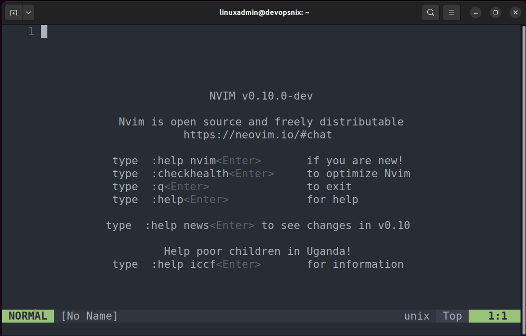 Below, as you can see, the interface of Neovim looks very similar to Vim.