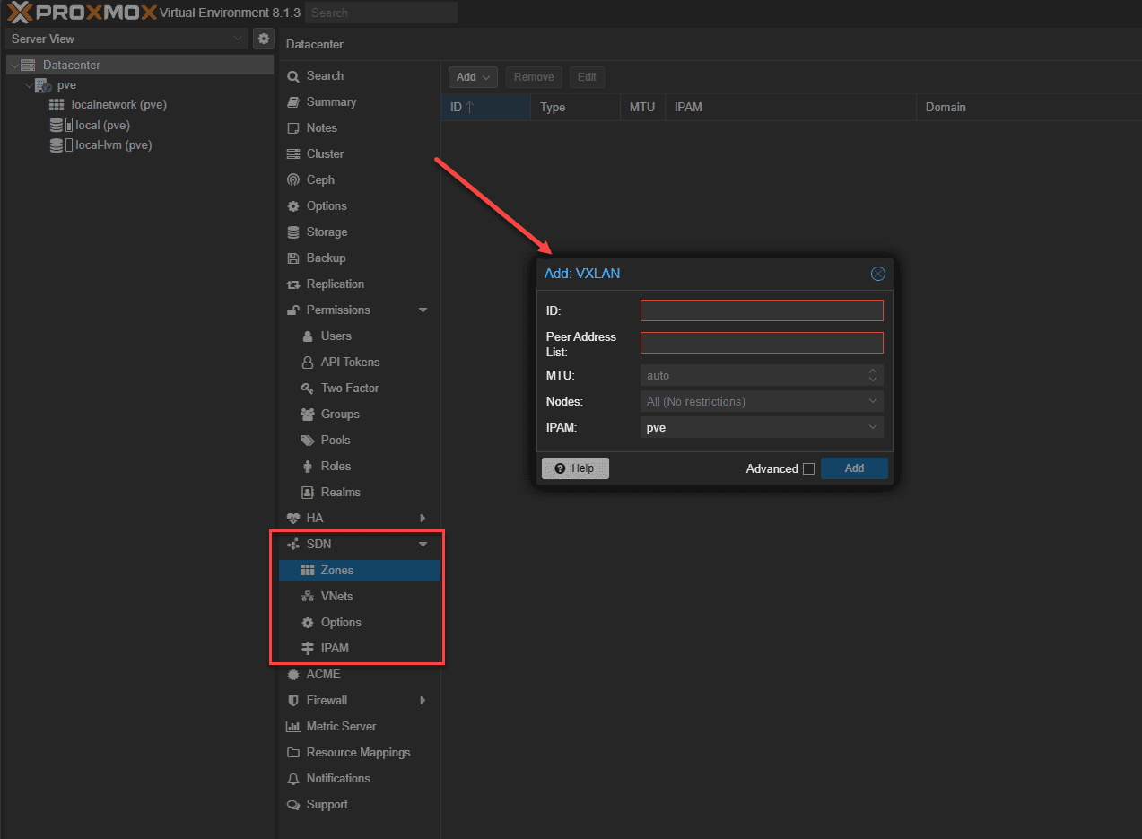 New with Proxmox 8.1 is the introduction of software-defined networking capabilities. You can read the official documentation here. The latest version of Proxmox VE comes with core SDN packages pre-installed. You now have the option for SDN technology in Proxmox VE, allowing admins to create virtual zones and networks (VNets). SDN can also be used for advanced load balancing, NAT, and other features.