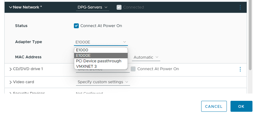 When it comes to network adapters for a virtual machine or container, both Proxmox and VMware vSphere support different types of network adapters. These include: